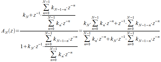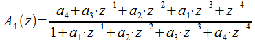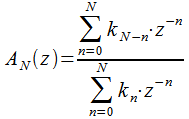 коэффициенты числителя и знаменателя (41) зеркальны, поэтому можно