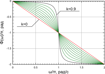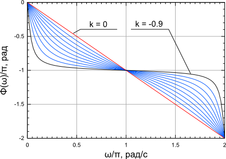 Рисунок 1: ФЧХ всепропускающего фильтра первого порядка