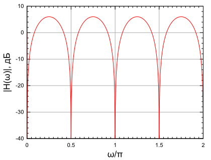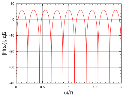 Рисунок 6: АЧХ и ФЧХ гребенчатого фильтра при