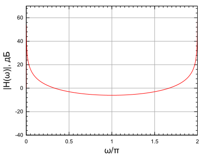 Коэффициент усиления данного фильтра согласно (17) равен 60 дБ, что