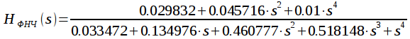 режекторный фильтр (ФНЧ-РФ) по заданному