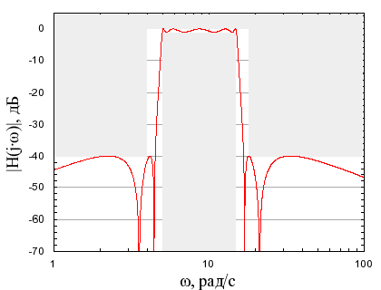 Рисунок 1: Коридор АЧХ полосового фильтра